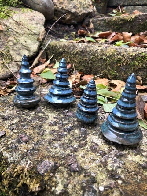 Blålige juletræer, lavet i mørkegrå stentøjsler. Sælges stykvis, skriv venligst hvilken en i ønsker. De er lidt skæve;)